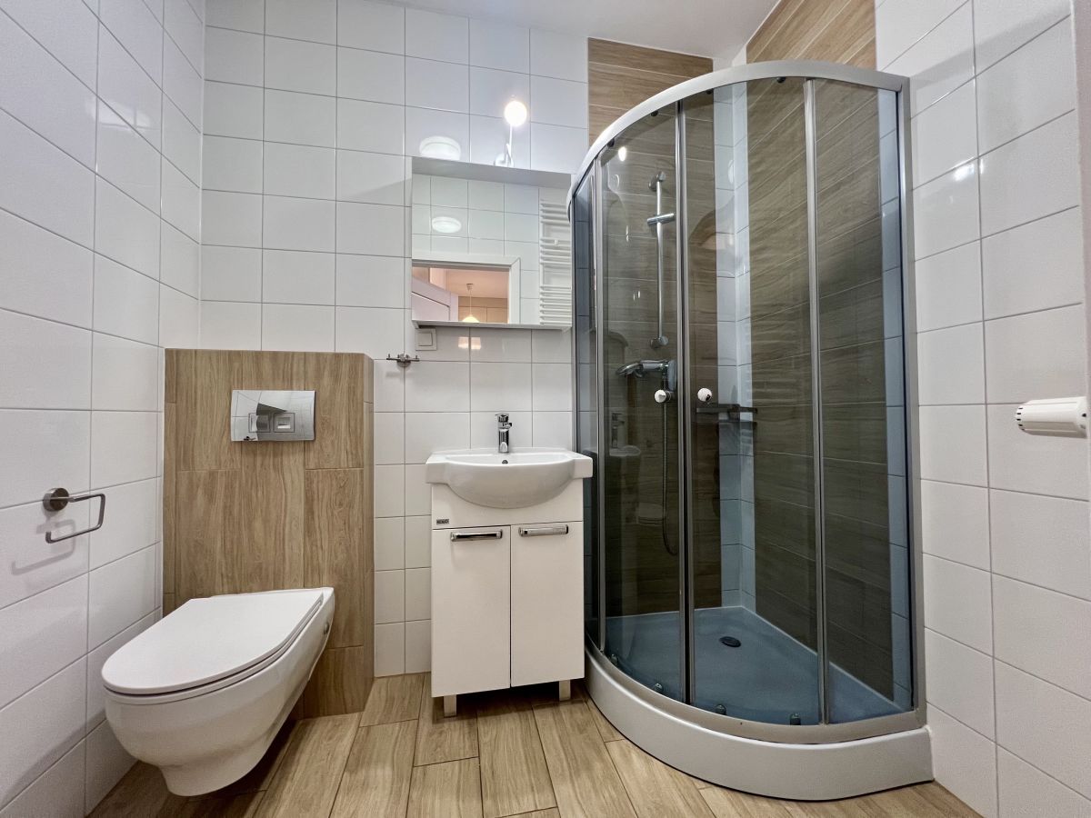 - łazienka z kabiną prysznicową oraz toaletą,