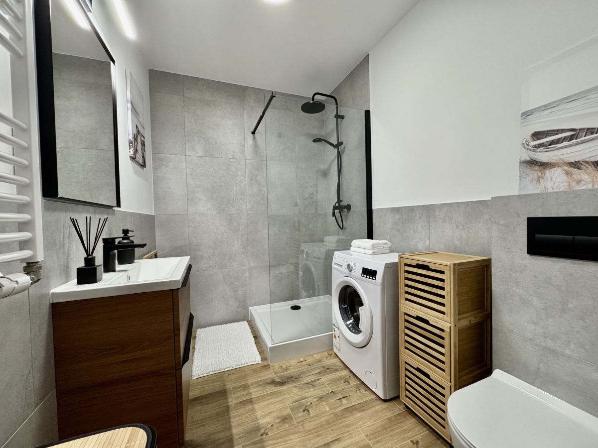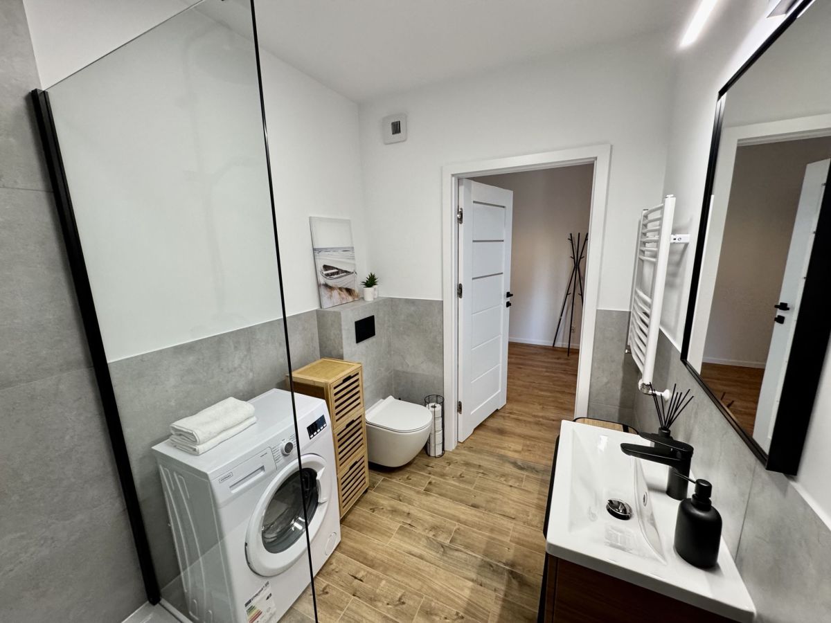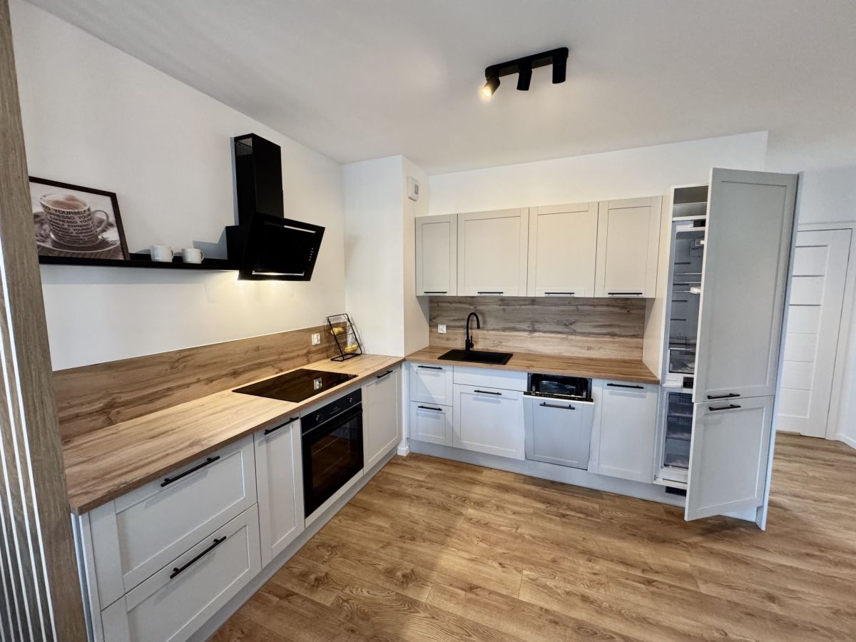 - W pełni umeblowane i wyposażone: meble, lodówka, pralka, zmywarka, piekarnik, płyta indukcyjna, telewizor itd.,